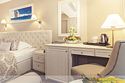 французская кровать, с/у, ванна-джакузи, фен, ТВ (интерактивное), телефон, сейф, центральная система кондиционирования