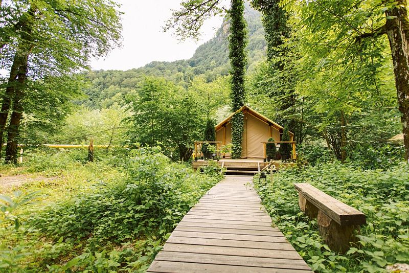 Глэмпинг находится вблизи Сочинского Национального парка, в трёх километрах от села Чвижепсе, в уединенном месте — 30 минут от Адлера, и вы окажитесь в другой реальности.