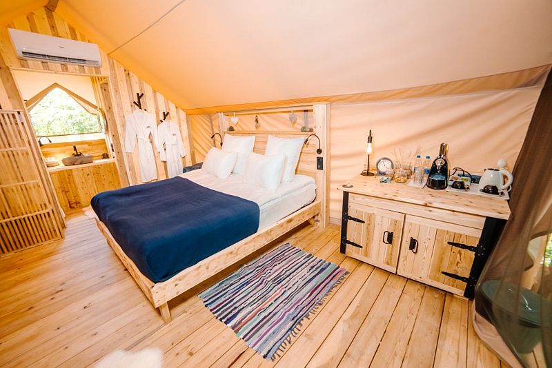И, конечно же, сами палатки очень комфортные с кучей разных опций в виде подогреваемых полов, кондиционера и очень удобно организовано всё. Всё-таки это палатки)