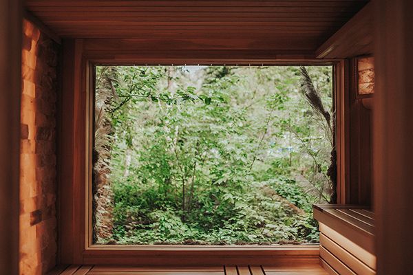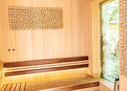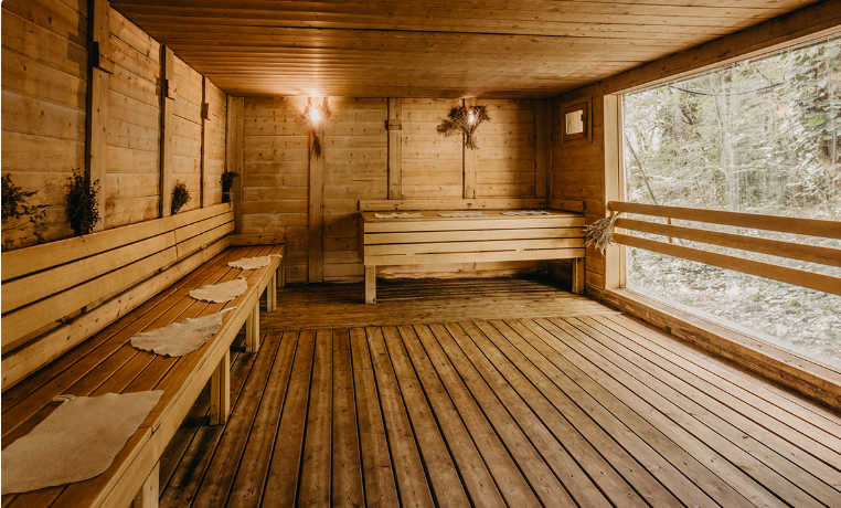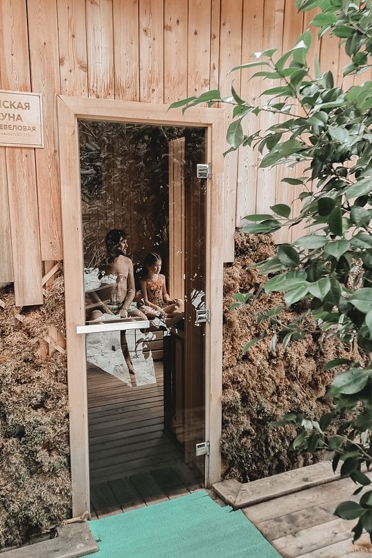 Расслабьтесь... Наслаждайтесь запахом липы, можжевельника и видом из панорамного окна на лес. Почувствуйте, как сухой воздух сауны нагреет вашу кожу и запустит механизмы терморегуляции. Ощутите пик наслаждения, погрузившись после горячей сауны в прохладную купель!