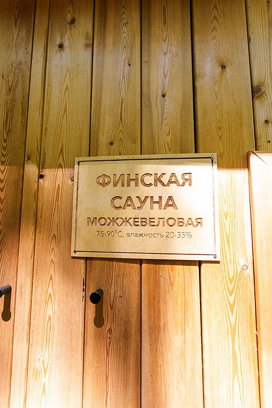 Инфраструктура: тапочки, бассейн, зона отдыха, полотенца, халатыТемпература парения: 75 °CФинская сауна можжевеловая.