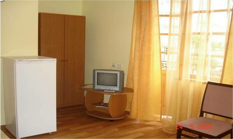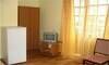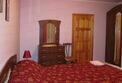 санузел с душем, телевизор (плазма), холодильник, двуспальная кровать, две тумбочки, платяной шкаф для одежды, стол и стул.