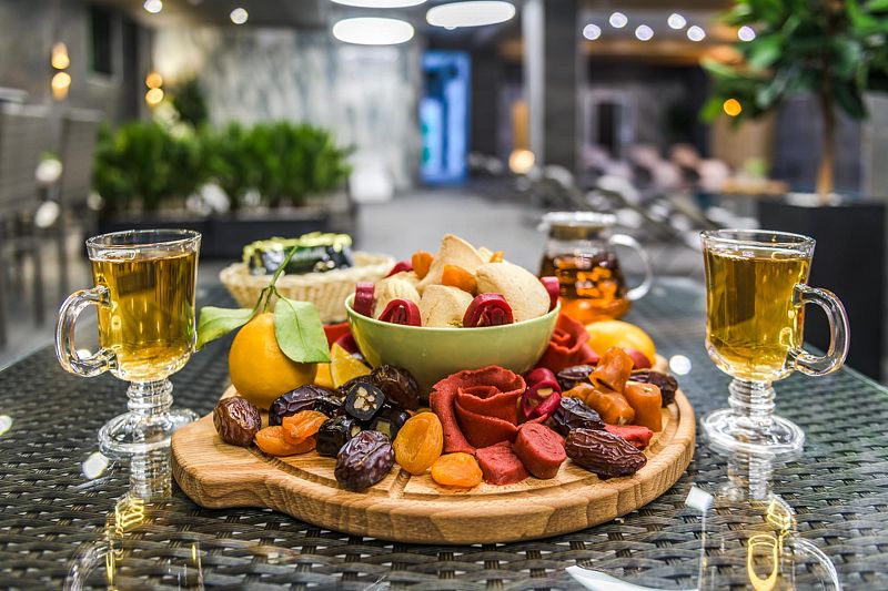 Фито-бар термального комплекса предлагает легкий сет для восстановления энергии и сил после физических нагрузок и термических перепадов.