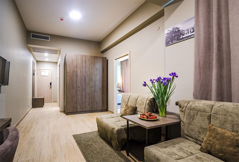 Номер состоит из двух комнат, санузла, прихожей.