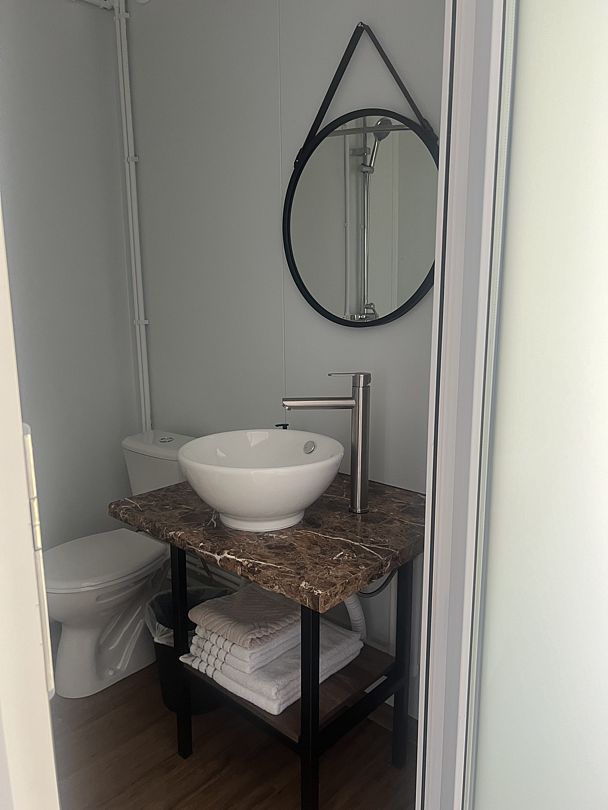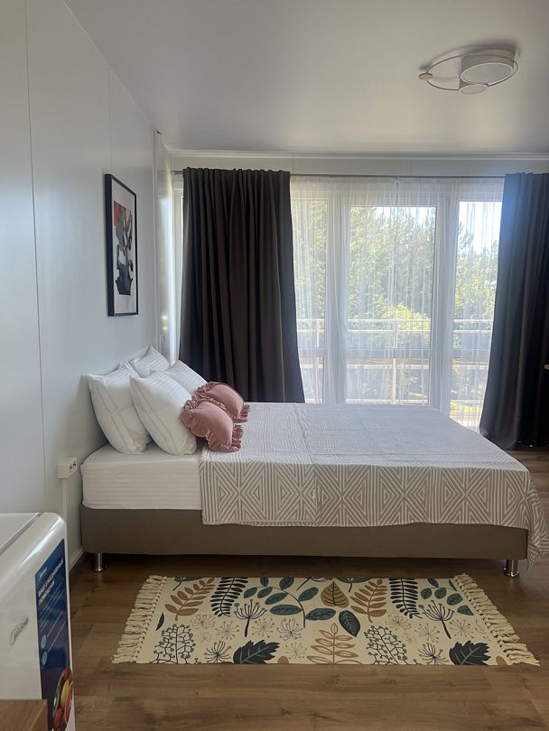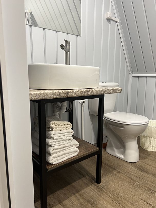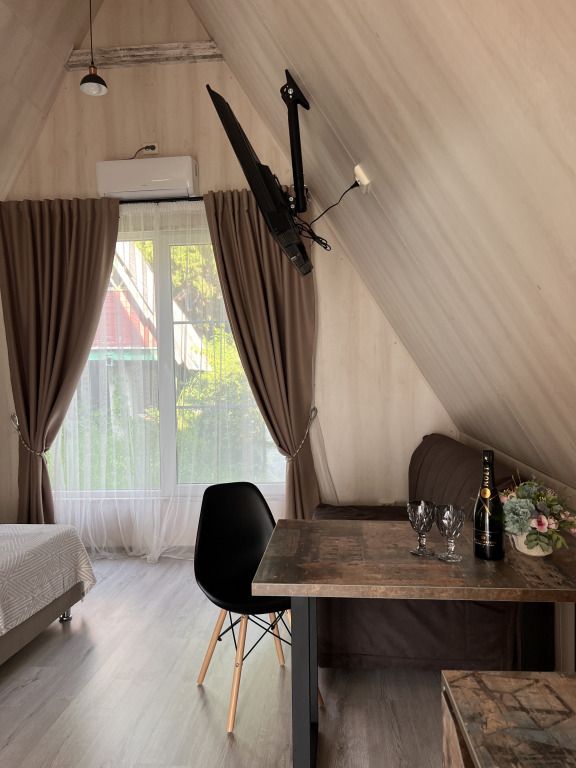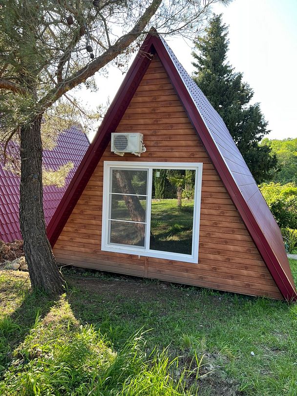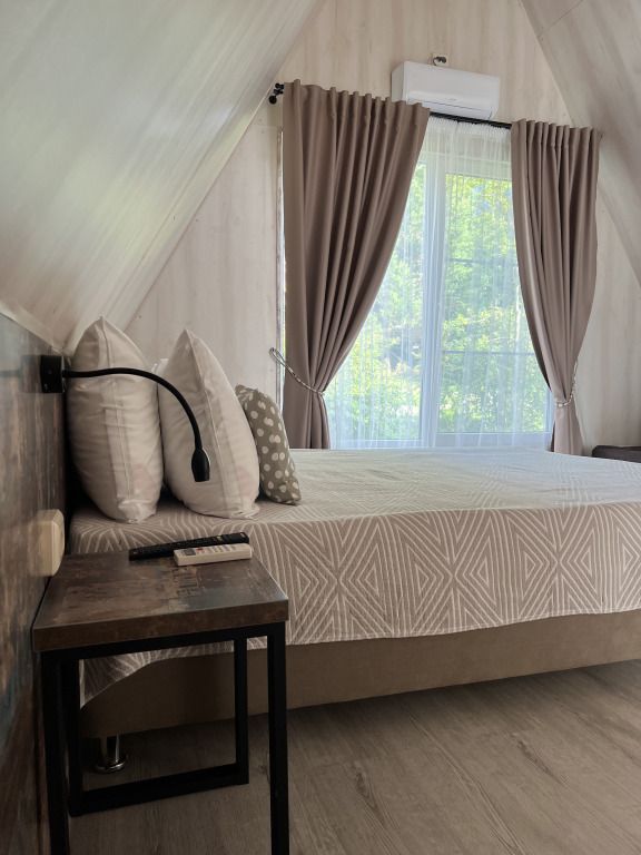 Уникальный дизайн A-frame сочетает в себе минимализм и функциональность: удобная кровать с ортопедическим матрасом, стильная зона отдыха и современная ванная комната обеспечат все условия для расслабления и полноценного восстановления сил. Высокоскоростной Wi-Fi и кондиционер создают комфорт даже в жаркие дни.