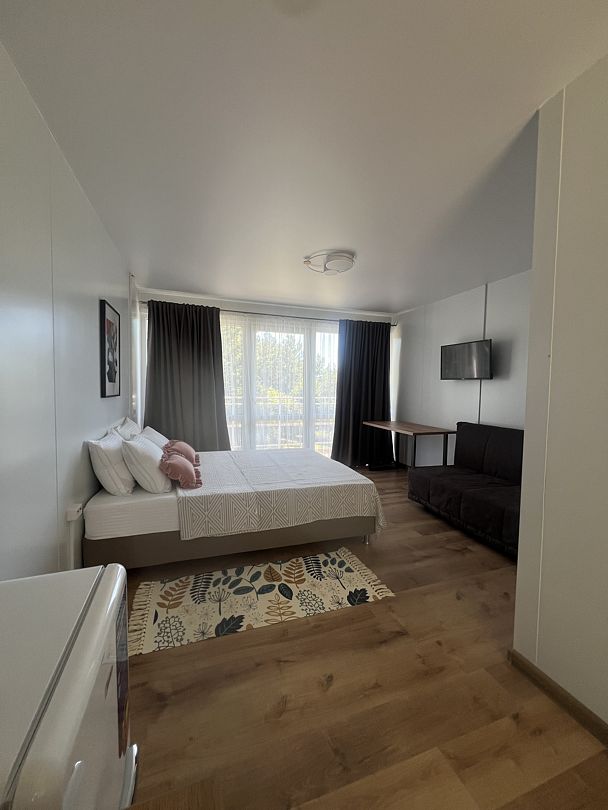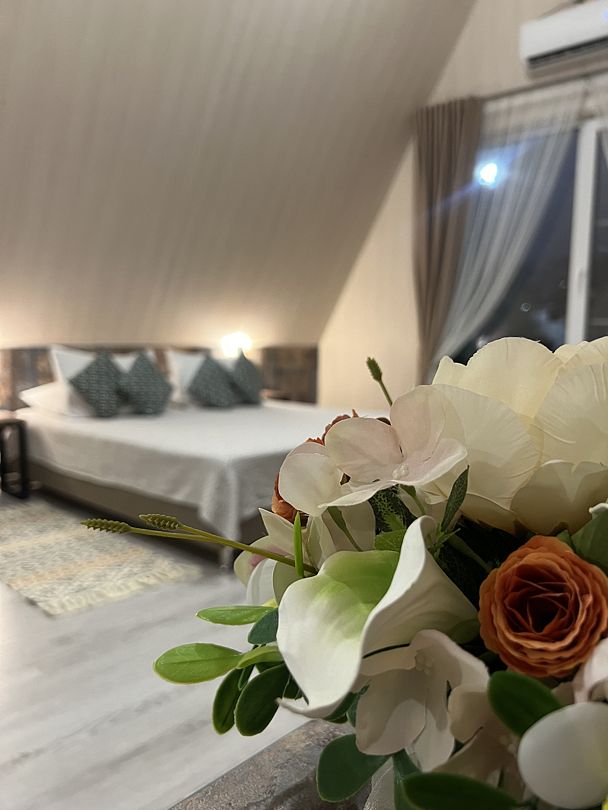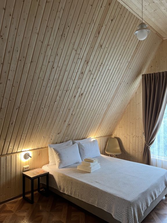Номер оборудован всем необходимым для комфортного проживания: просторная кровать с ортопедическим матрасом, современная ванная комната, кондиционер и высокоскоростной Wi-Fi. Отдыхайте в гармонии с природой, наслаждайтесь уютом и роскошью – ваш идеальный отдых начинается здесь.