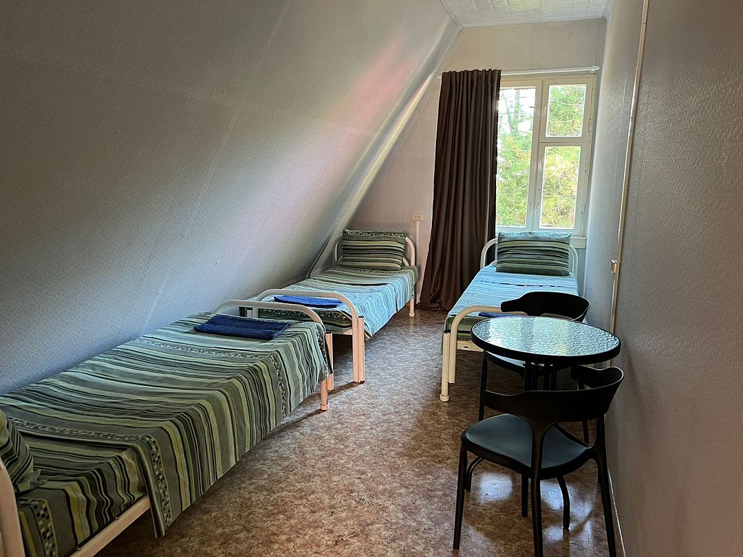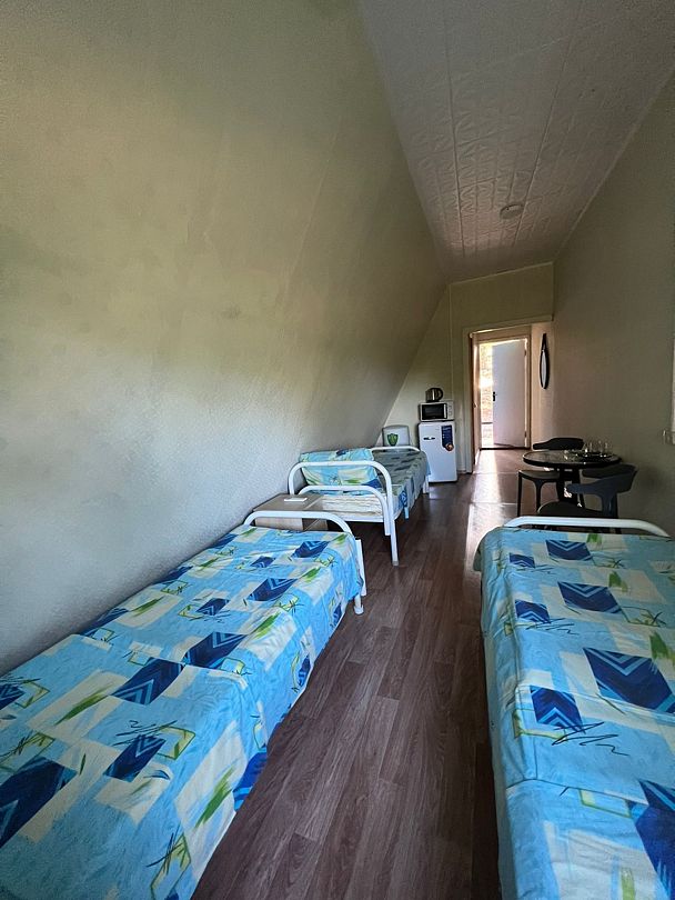 В номере размещены три кровати, застеленные чистым бельем, а также стол и стулья для комфортного времяпрепровождения. В распоряжении гостей – холодильник и чайник с необходимой посудой, чтобы вы могли приготовить себе напиток в любое время.