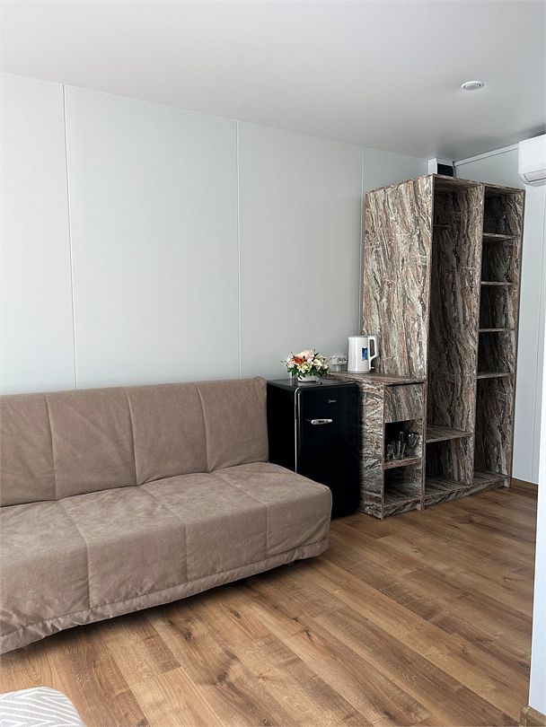 Отдельно стоящий домик. Имеет просторную комнату с собственным с/у, кондиционером, комфортными кроватями и необходимой бытовой техникой.