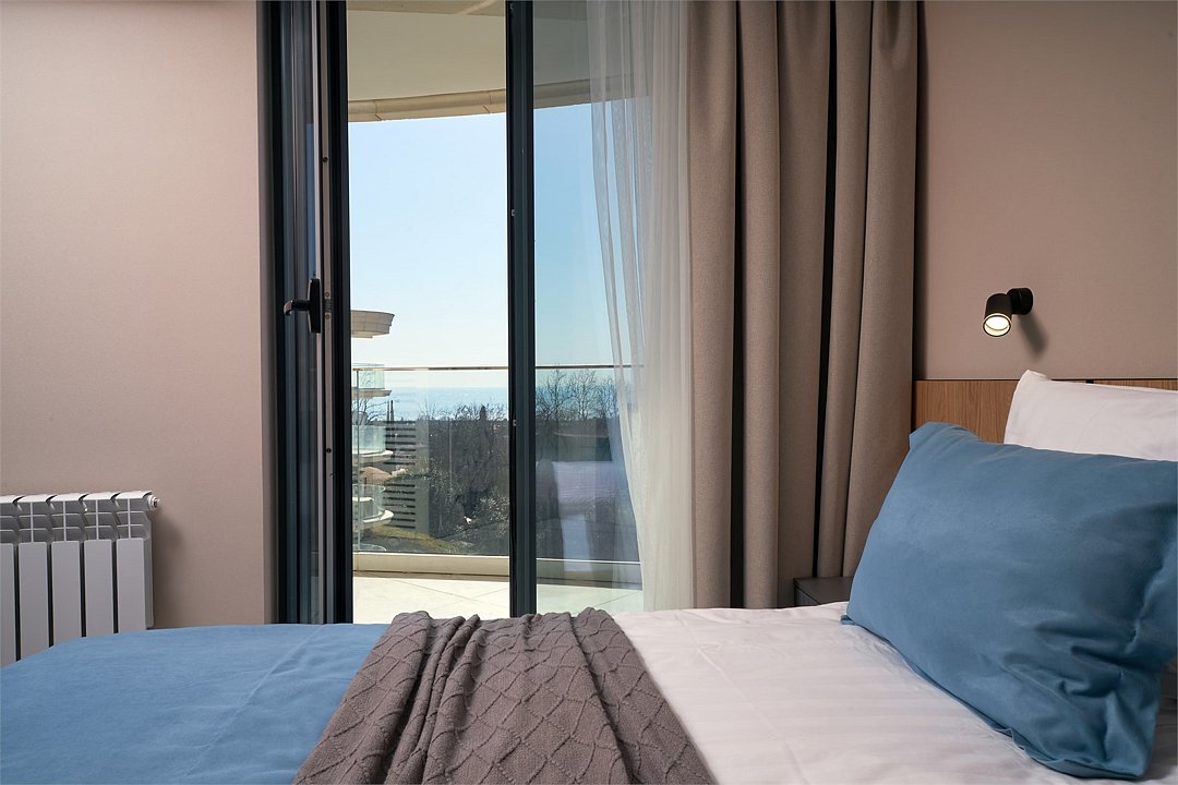 Wi-Fi, холодильник, кондиционер, светильник, фен, электронные замки, микроволновая печь, утюг, санузел, халаты, пляжные полотенца, тапочки, косметические средства, балкон, двуспальная кровать, стулья, гардеробная, зеркало, кухня, чайный набор, чайник, унитаз, душ, вид во двор, стаканы, столовые приборы, стиральная машина и сушилка, стол, вид на горы, телевизор со Smart TV, пуфик, балкон с боковым видом на море, онлайн-регистрация до заезда, вешалки-плечики, шапочка для душа, мыло, коворкинг, онлайн-регистрация, можно с питомцами, пакетик для выгула, пеленкаВ гостиничном номере