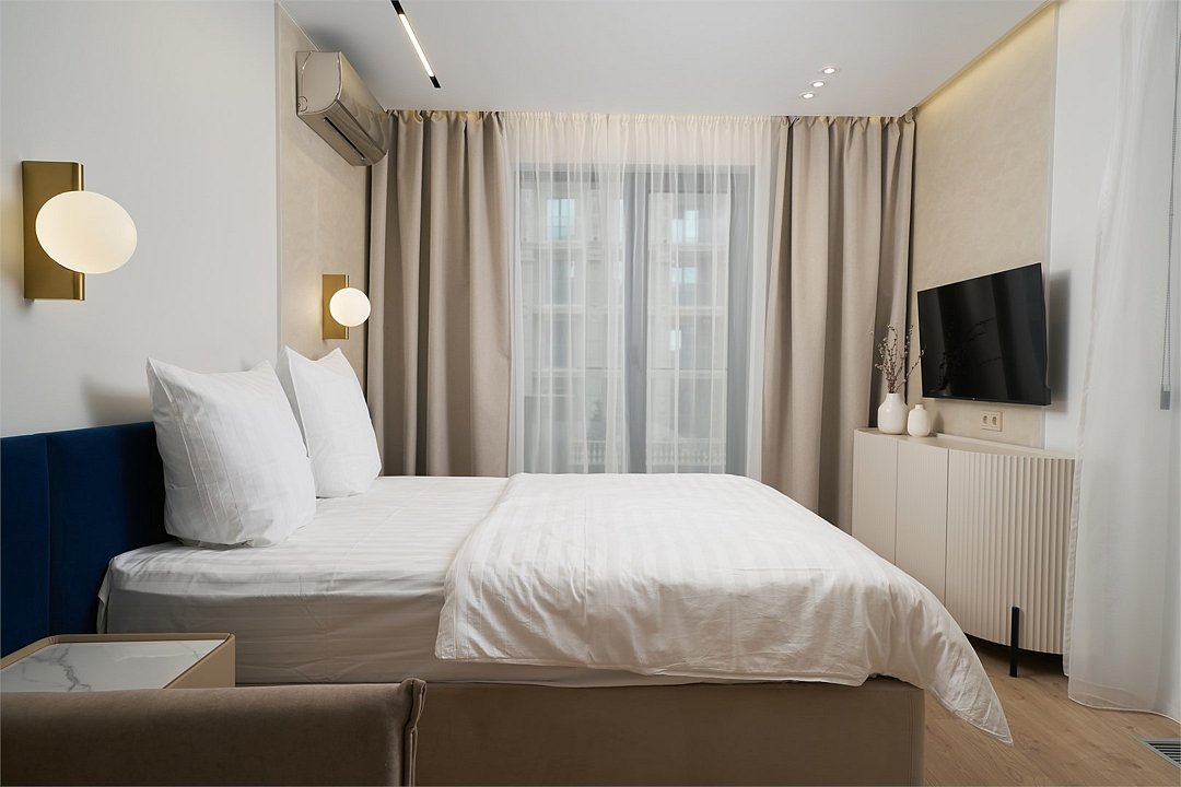 Wi-Fi, холодильник, кондиционер, светильник, фен, система безопасности, электронные замки, плита для приготовления пищи, микроволновая печь, утюг, душевая кабина, санузел, теплый пол, халаты, банные полотенца, пляжные полотенца, тапочки, косметические средства, балкон, кровать «King size», гипоаллергенное белье, гладильная доска, шкаф для одежды, вешалки, письменный стол, зеркало, ковер, чайный набор, набор посуды, стиральная машина, унитаз, раковина, вид на море, вид во двор, стаканы, столовые приборы, стул, туалетный столик, сушилка для белья, кухонный уголок, вид на горы, телевизор со Smart TV, теплые полы, номер для некурящих, онлайн-регистрация до заезда, чайная станция, уборка номера, услуги прачечной (платно), вешалки-плечики, бутилированная вода, шапочка для душа, мыло, затемняющая штора, зеркало в полный рост, коворкинг, прачечная (за дополнительную плату), комната для переговоров (за дополнительную плату), можно с питомцамиВ гостиничном номере