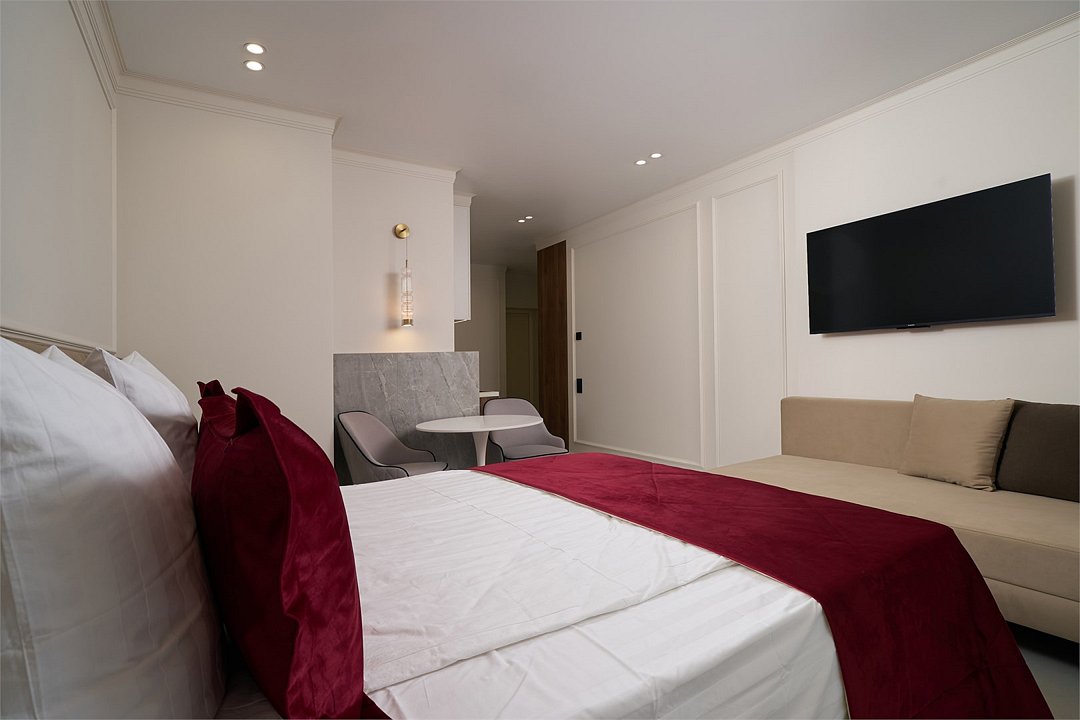 Апартаменты находятся во втором корпусе гостиничного комплекса Marine Garden. Основные характеристики: - кровать размера 180х200, из которой можно сделать 2 раздельные кровати; -дополнительное место (за доплату) - душ; - вид на море; - балкон. Высокоскоростной доступ к интернету по wi-fi Телефон LED телевизор Современная система контроля климата ФенУслуги и удобства