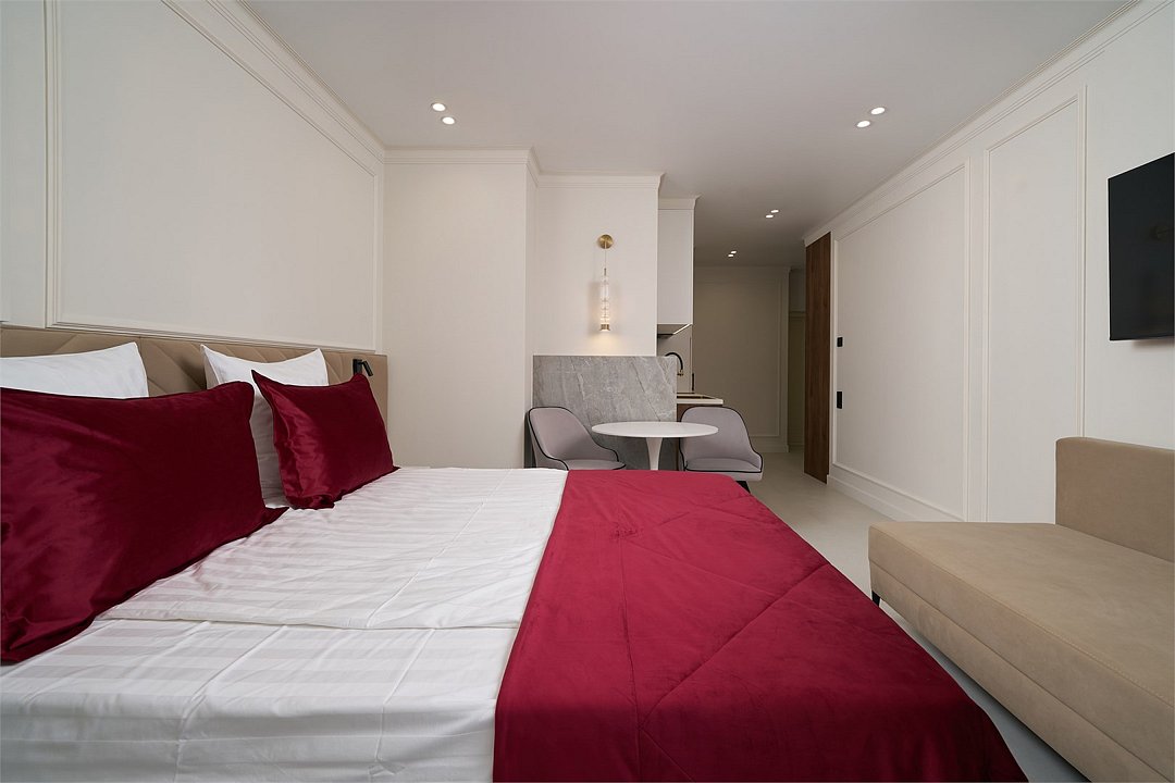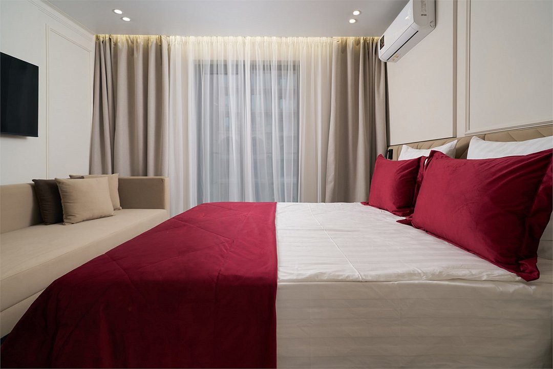 Апартаменты находятся в седьмом корпусе гостиничного комплекса Marine Garden. Основные характеристики: - кровать размера 180х200 - душ - вид во двор - балкон. - Высокоскоростной доступ к интернету по wi-fi - Smart телевизор - Современная система контроля климата - ФенУслуги и удобства