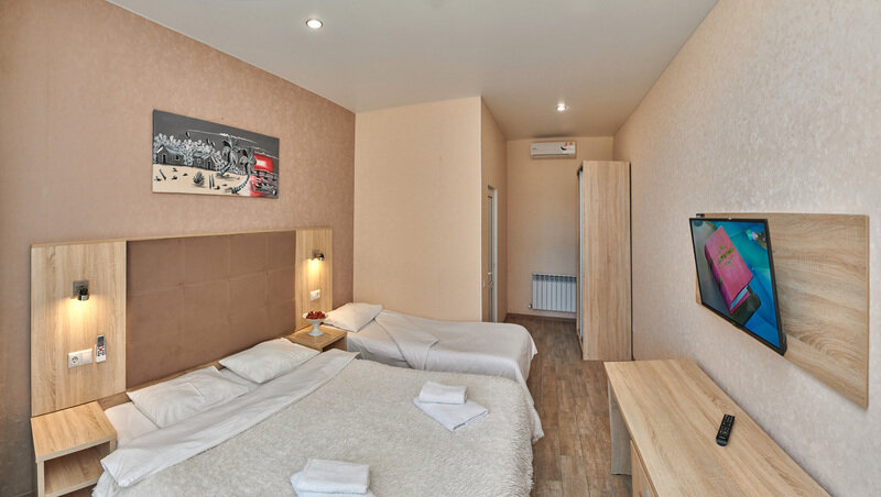 К размещению представлены комфортабельные номера, вместимостью от двух до шести человек. Все они оснащены сплит-системой, большим плазменным телевизором, отличным Wi-Fi и ванной комнатой с душем, феном и косметическими принадлежностями. К услугам отдыхающих прачечная.