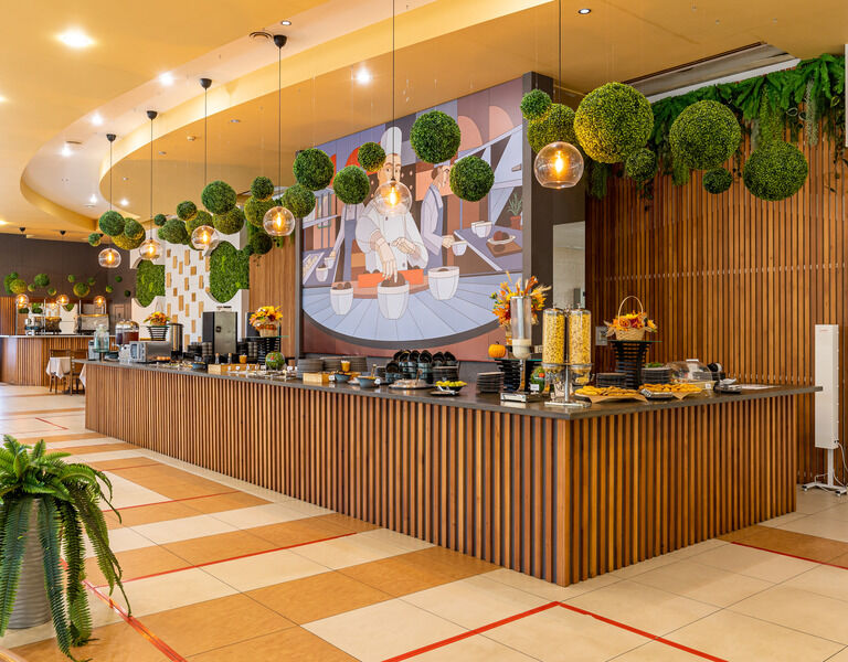 Питание по системе «шведский стол», если оно не включено в тариф, можно приобретать в ресторане при отеле.