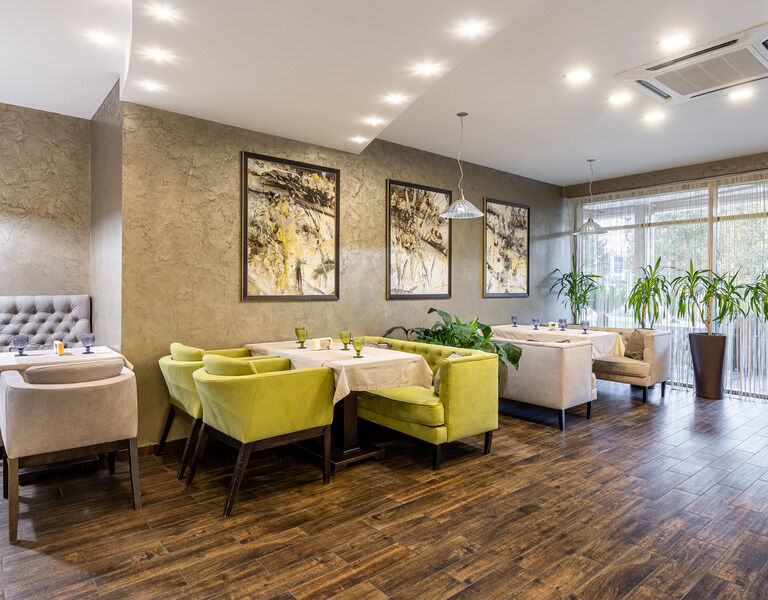 В холле отеля работает лобби бар с большим разнообразием напитков, легких закусок и десертов. Так же в меню есть блюда средиземноморской, итальянской и русской кухни.