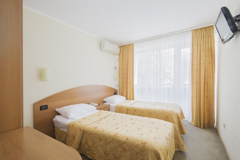 Номер с балконом - можно (не афишируя) курить. Вход по карточкам. С 6го этажа виден кусок моря. Есть холодильник и ТВ панель. Все аккуратно, но не хватало простора и современного интерьера.