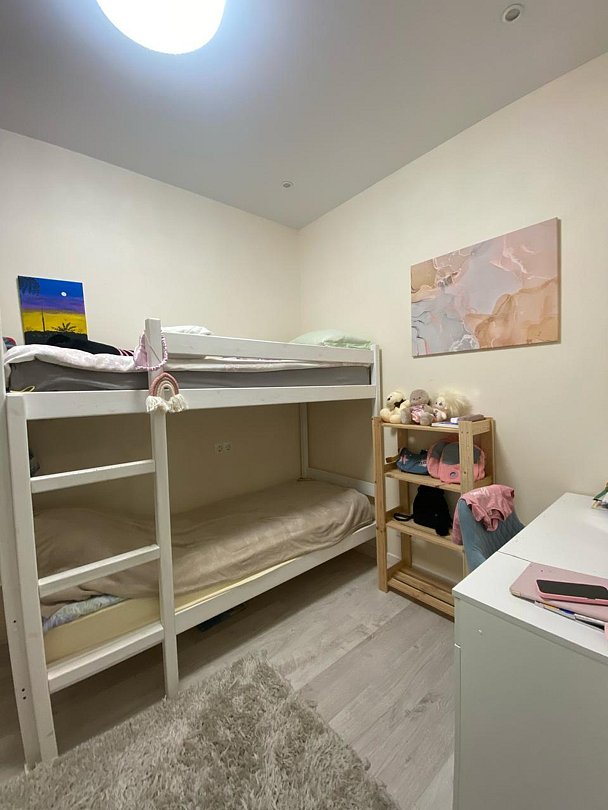 В апартаментах: 1 двуспальная кровать, 1 двуспальный диван, 1 двухъярусная детская кровать.