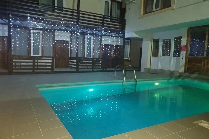 На территории есть благоустроенный внутренний дворик, общая кухня, бассейн с подогревом и парковка по предварительному заказу.