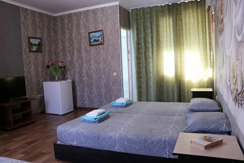 В 200 метрах от гостевого дома — галечный пляж с лежаками, навесами, раздевалками, водными аттракционами и прокатом пляжного инвентаря.