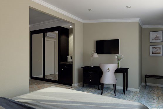 Номер с кроватью "queen-size" и видом на морской порт Сочи. В числе удобств — балкон с садовой мебелью, телевизор с плоским экраном, рабочий стол, кондиционер, электрический чайник, мини-бар, кофемашина Nespresso и принадлежности для приготовления чая/кофе. В данной категории номера гостям отеля предоставляется премиальная британская косметика бренда «The White Company», являющаяся синонимом идеальной простоты, повседневной роскоши и безупречного качества. Лучшая коллекция элегантных и восстанавливающих ароматов для тела в отеле «Marina Yacht by Stellar Hotels, Sochi». Собственная ванная комната с тропическим душем укомплектована туалетно-косметическими принадлежностями, полотенцами, халатами и тапочками.Услуги и удобства
