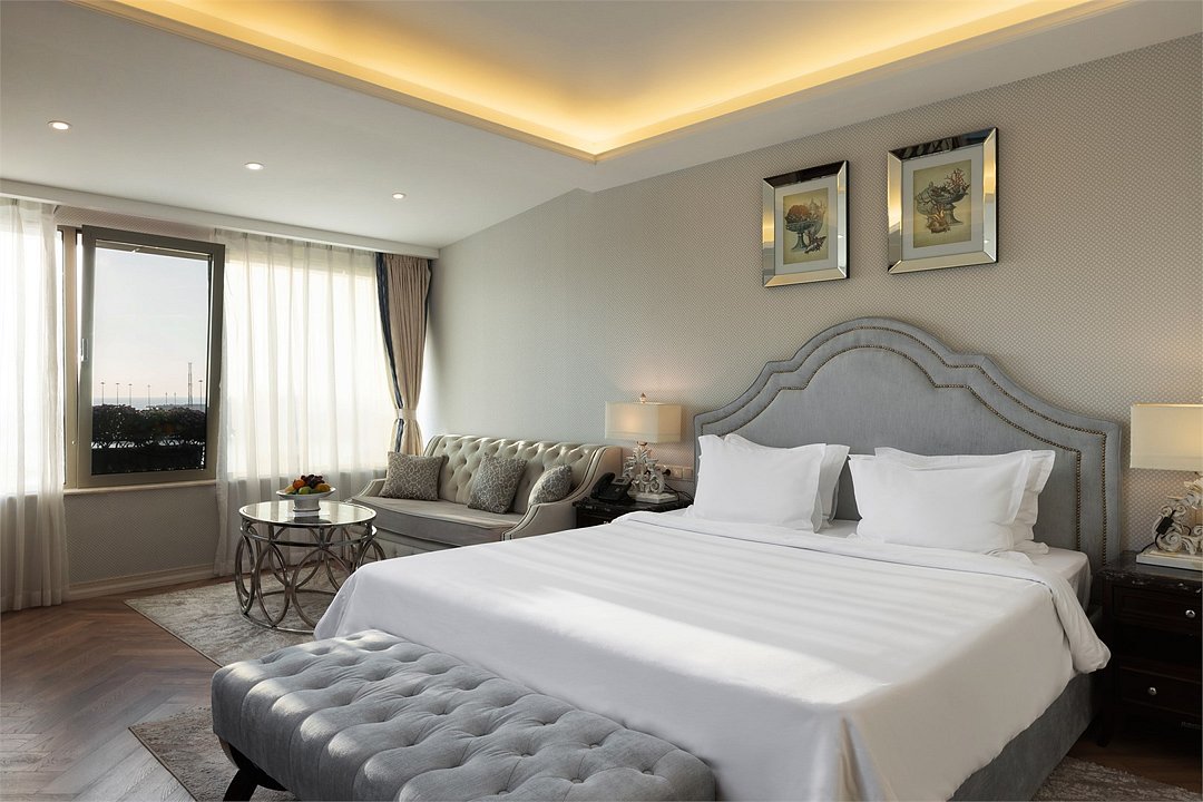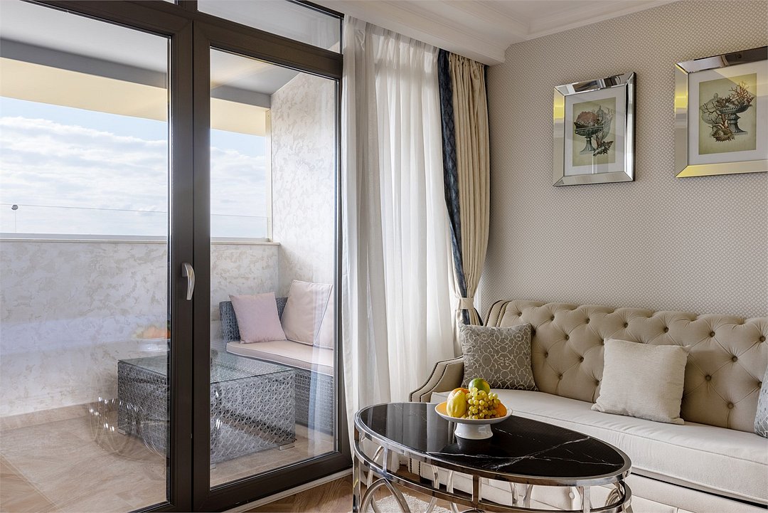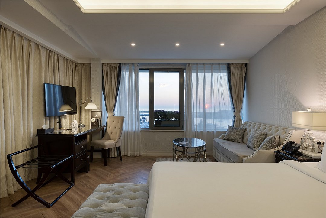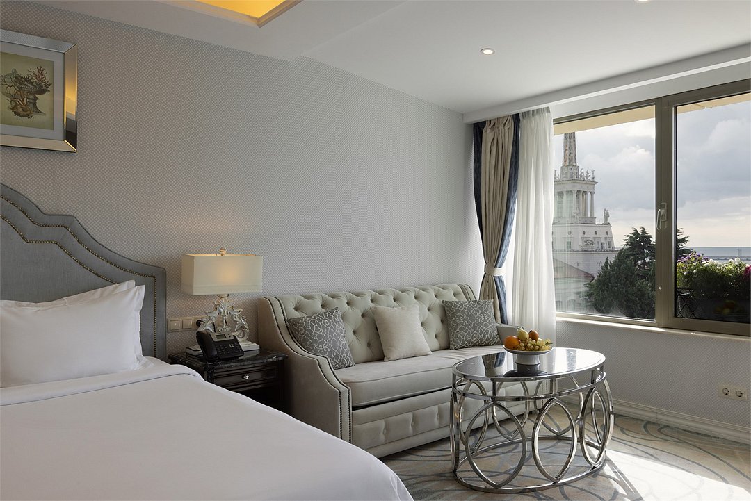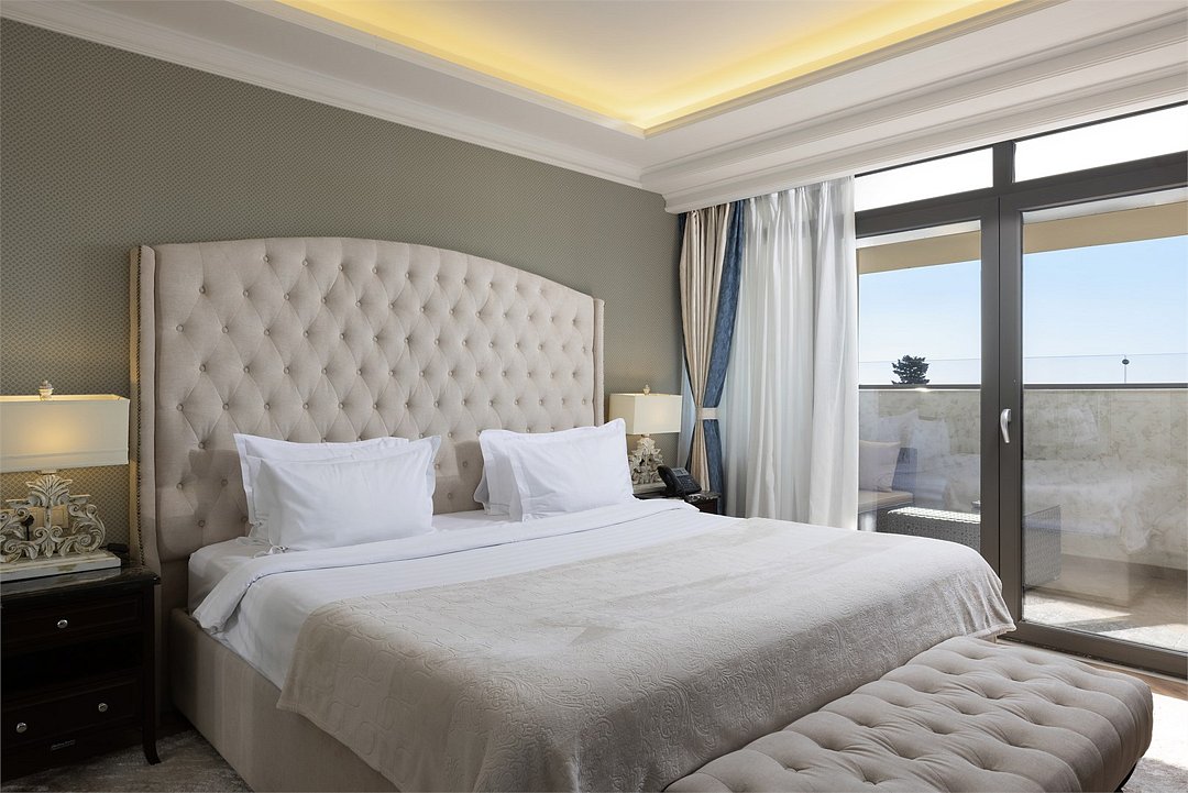 спутниковое телевидение, Wi-Fi, холодильник, кондиционер, система климат-контроля, светильник, настольные лампы, фен, электронные замки, кофемашина, гидромассажная ванна, санузел, банные принадлежности, халаты, банные полотенца, пляжные полотенца, тапочки, гигиенические средства, косметические средства, терраса, кровать «Queen size», диван, кресла, тумбы, стулья, шкаф для одежды, гардеробная, вешалки, журнальный столик, письменный стол, обеденный стол, багажная тумба, комод, пуфики, эксклюзивная мебель, мини-бар, чайный набор, набор посуды, обслуживание номеров, сейф, унитаз, раковина, мягкая мебель, питьевая вода, обеденная зона, гостиная зона, ковровое покрытие, отопление, душ, вид на море, стаканы, столовые приборы, внутренний телефон, телевизор с плоским экраномВ гостиничном номере