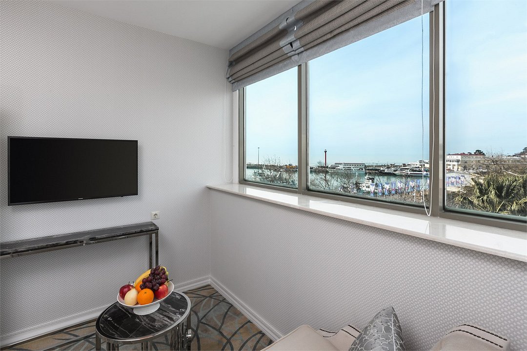 Номер с кроватью "queen-size" и с панорамным видом на Морской порт. В числе удобств — гостиная с диваном, телевизор с плоским экраном, рабочий стол, кондиционер, электрический чайник, мини-бар, итальянская капсульная кофемашина Caffitaly и принадлежности для приготовления чая/кофе. Собственная ванная комната с тропическим душем укомплектована туалетно-косметическими принадлежностями, полотенцами, халатами и тапочками. В данной категории номера гостям отеля предоставляется премиальная британская косметика бренда «The White Company», являющаяся синонимом идеальной простоты, повседневной роскоши и безупречного качества. Лучшая коллекция элегантных и восстанавливающих ароматов для тела в отеле «Marina Yacht by Stellar Hotels, Sochi».Услуги и удобства