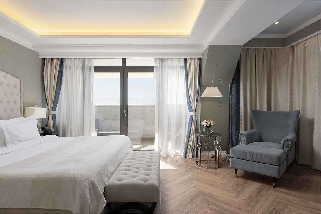 Роскошные номера с кроватью размера "king-size" и телевизором с плоским экраном. В номерах есть мини-холодильник, итальянская кофемашина Caffitaly и принадлежности для приготовления чая/кофе.