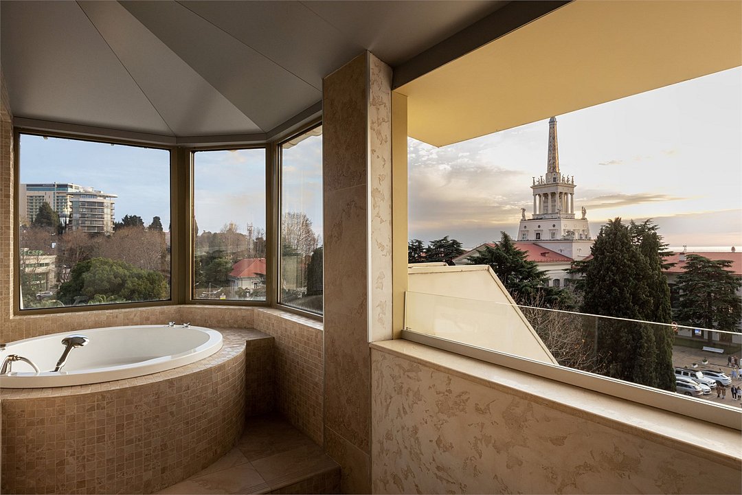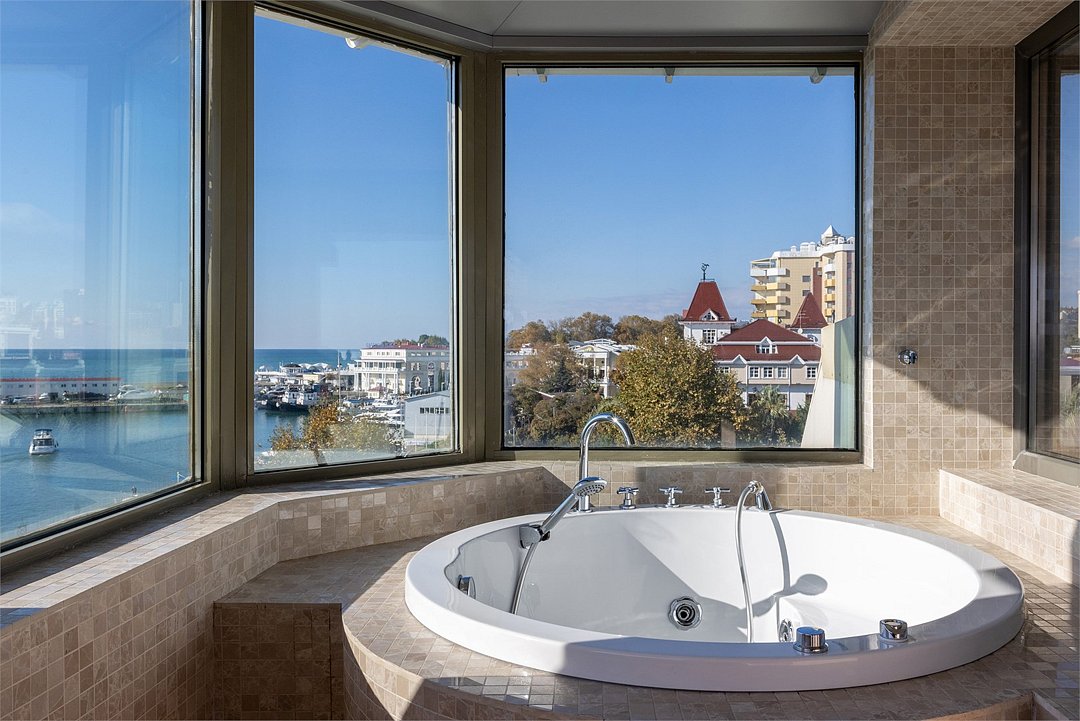 В распоряжении гостей собственная ванная комната с тропическим душем, халатами и тапочками. В некоторых номерах есть балкон с установленной гидромассажной ванной и садовой мебелью, а также номера с видом на море или город. В номерах отеля «Marina Yacht by Stellar Hotels, Sochi» предоставляется два вида премиальной косметики: британская косметика бренда «The White Company», являющаяся синонимом идеальной простоты, повседневной роскоши и безупречного качества. А также косметика швейцарского бренда «Chopard», разработанная для самых взыскательных гостей. Изысканный состав, элегантный и роскошный аромат. Все самое лучшее для гостей отеля «Marina Yacht by Stellar Hotels, Sochi».