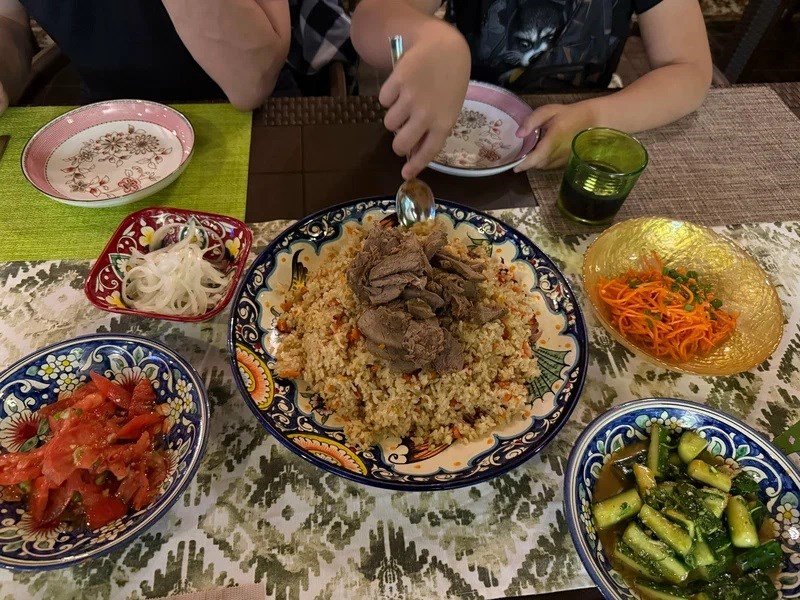 В обеденное время, с 13:00 до 14:00, шеф-повара радуют посетителей специальным сет-меню. Оно включает горячие первые и вторые блюда, свежие салаты, выпечку, десерты, мороженое и широкий выбор напитков. Вечером, с 19:00 до 21:00, ресторан превращается в настоящий гастрономический уголок мира. Гостей ждут тематические ужины с блюдами разных кухонь: ароматный узбекский плов, насыщенная шурпа, наваристые супы с нутом и копченостями.