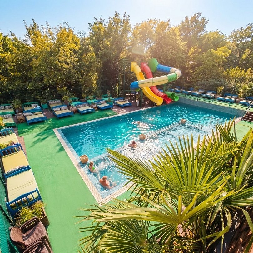 На территории базы отдыха «Марракеш» круглый год гостей ждет открытый бассейн с минеральной водой. Просторная зона бассейна подходит для плавания, водных упражнений или приятного отдыха в воде, а также катания с захватывающих водных горок — идеальное решение для активного досуга и семейного времяпровождения.