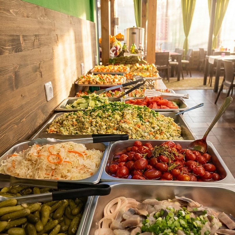 Время работы: от 08:00 до 21:30Каждое утро, с 8:00 до 10:00, гостей ждет изысканный завтрак «шведский стол». Здесь подают свежие овощи и фрукты, богатый ассортимент сыров и мясных деликатесов, молочные продукты, яйца, домашнюю выпечку и сладости. Напитки на любой вкус — от соков и компотов до ароматного чая и кофе — дополнят утреннюю трапезу.