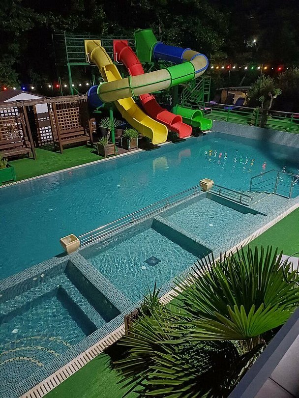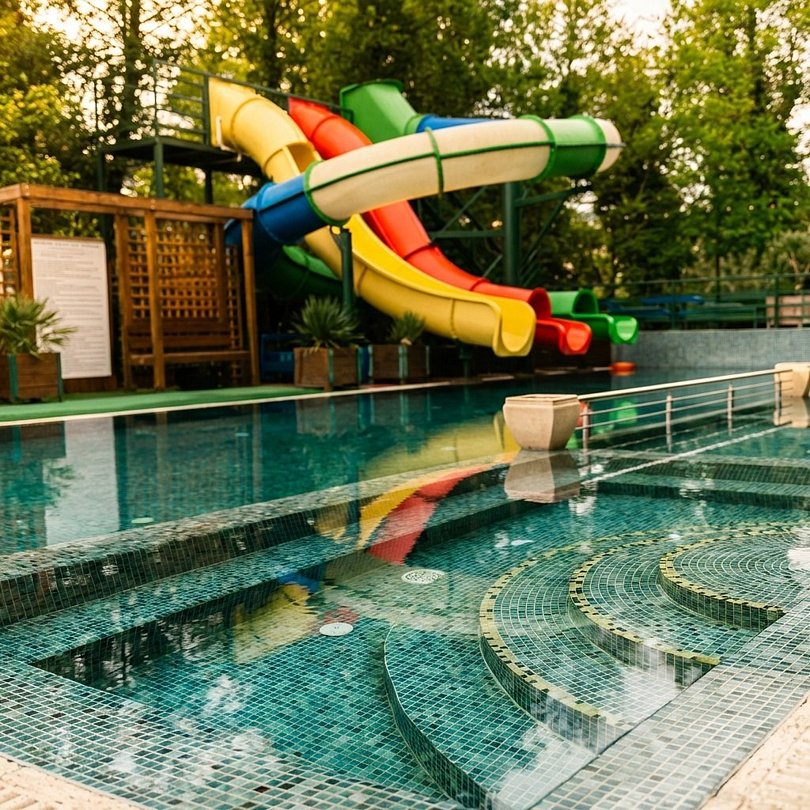 Для маленьких гостей предусмотрен отдельный бассейн, где их отдых будет не только безопасным, но и наполненным яркими впечатлениями. Специальный гейзер в детском бассейне сделает купание веселым и запоминающимся!