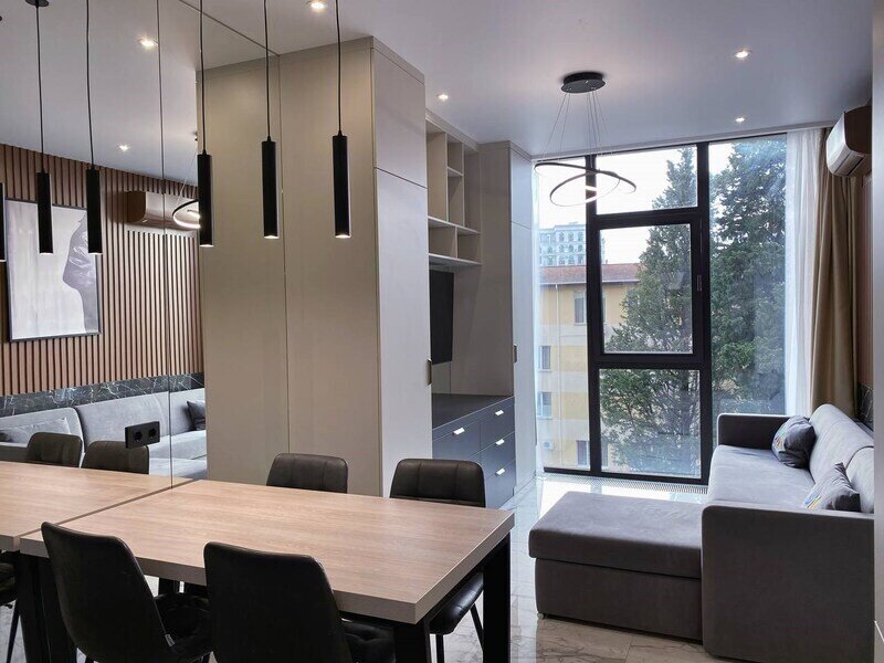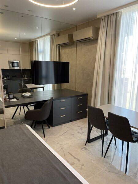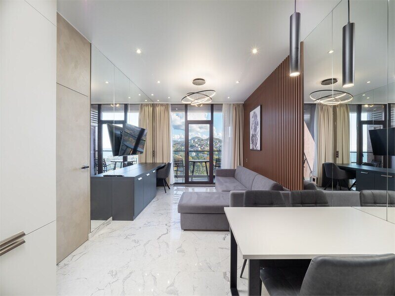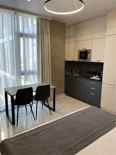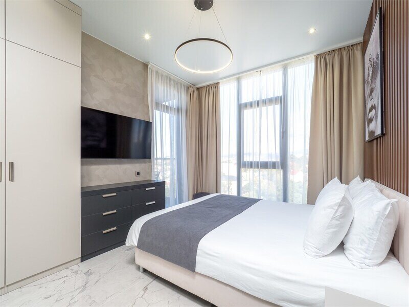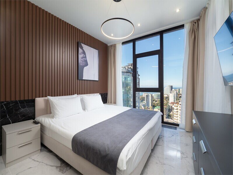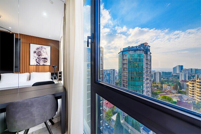 Путешествие с семьейОчень достойные апартаменты с потрясающим видом и сервисом!Очень классные апартаменты. Видовые характеристики.просто бомба, пушка, ракета. На крыше есть 4 небольших бассейна, да не глубокие но кайфе не в этом а в том что расслабляться и наслаждаться пейзажами города Сочи и моря! Шикарная обстановка вокруг. Детская универсальная площадка перед комплексом и на крыше. Рядом. Фонтан с подсветкой множество лавочек, и всё это находится. В потрясающей зелени везде идеальная частота, как на улице, так и во всём комплексе. Уютная зона отдыха с подвесными креслами и мягкими подушками. Как только переступаешь порог въезда, как будто попадаешь в другой мир настолько всё гармонично, атмосферно чисто. С удовольствием вернемся снова и снова!