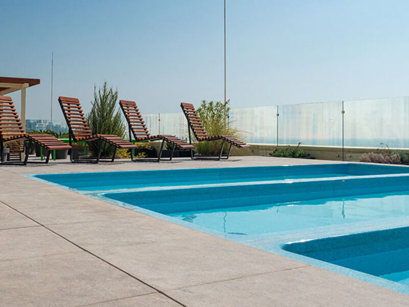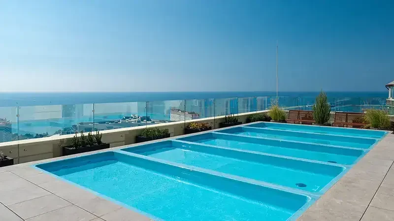 - пользование открытым концептуальным (без подогрева, глубина 60см) бассейном на высоте 60 метров с панорамным видом на море.
