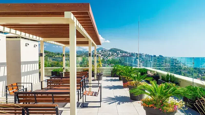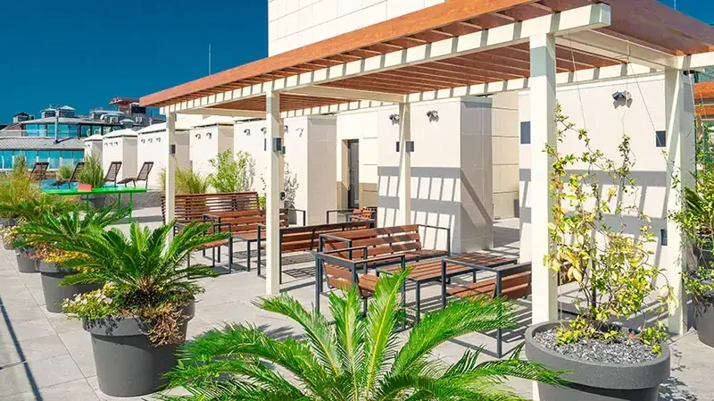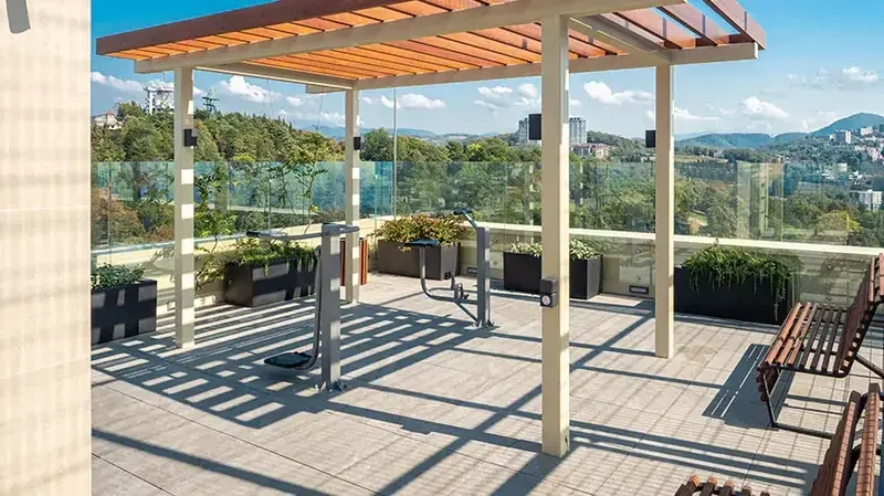 Комфортное занятие рабочими вопросами возможно как в собственных апартаментах, так и в lounge-зоне. Работа на открытом воздухе с чашкой горячего чая скорее станет приятным времяпрепровождением, нежели нудной рутиной.