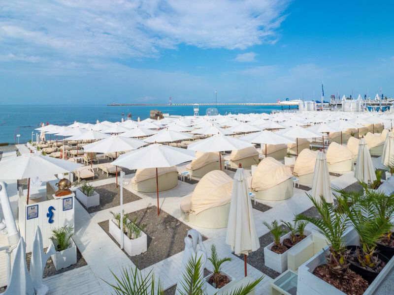 Тип пляжа: галечныйИнфраструктура: лежаки, зонтики, шезлонги -