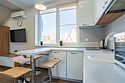 Есть небольшая кухня,с индукционной плитой , мини холодильником , чайник и микроволновка