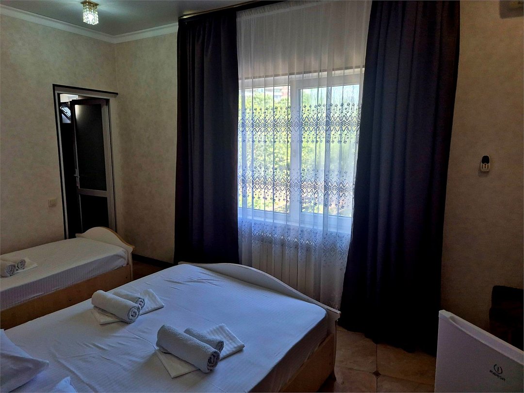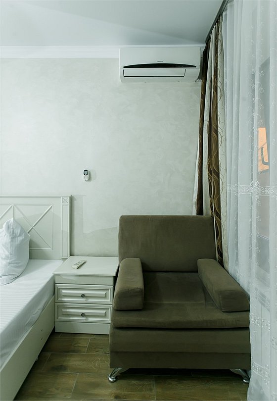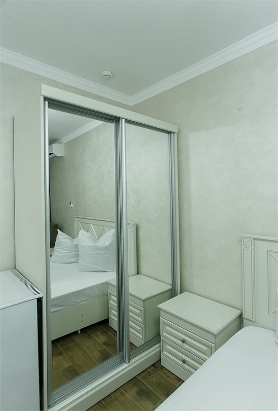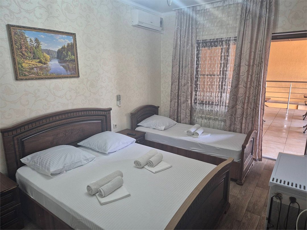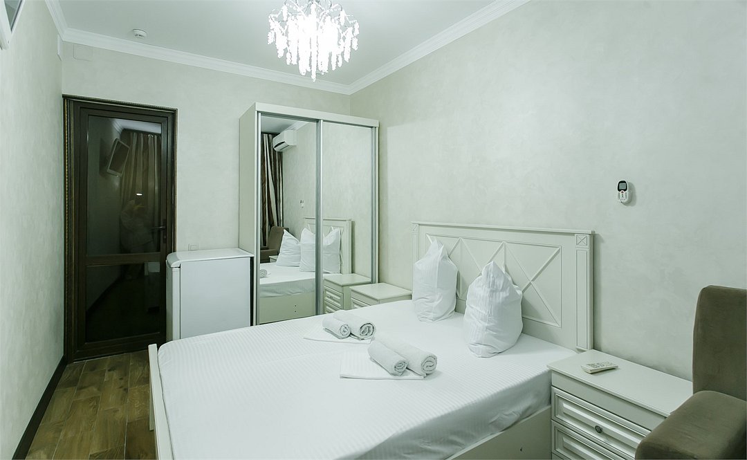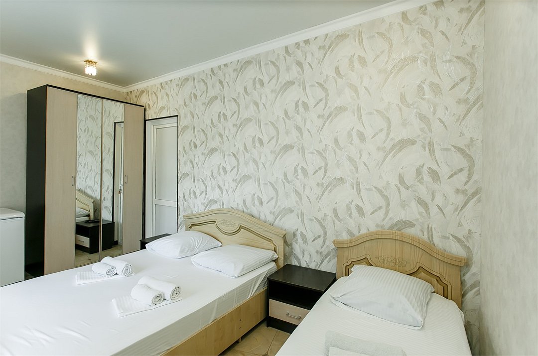 В номере: В номере: мебель (кровати, зеркальный шкаф-купе, тумбочка. ), холодильник, телевизор с плоским экраном, кондиционер. Сан. узел расположен в номере. Описание: Площадь номера 18 м2, размещение в номере: до 3 человек.Услуги и удобства