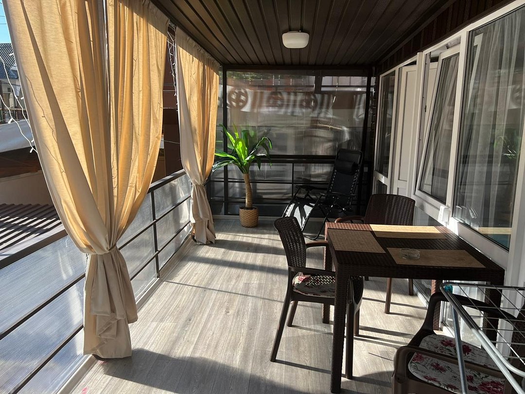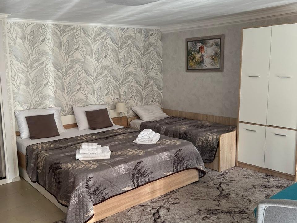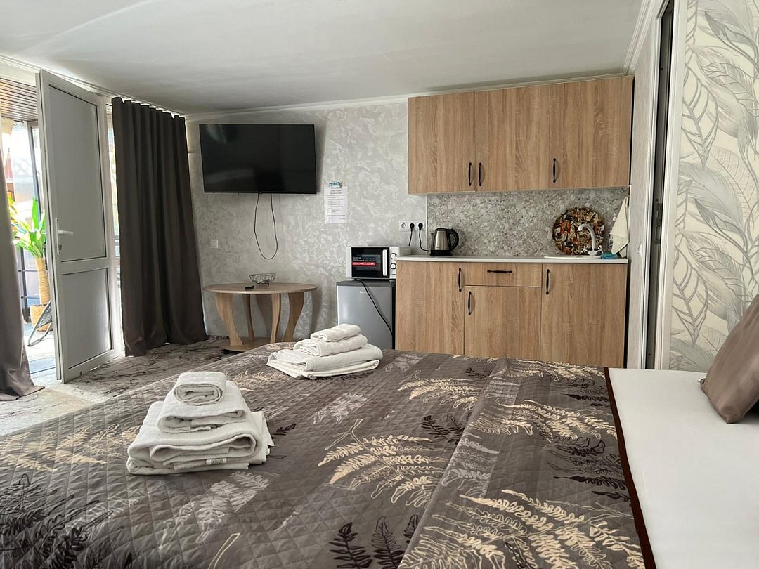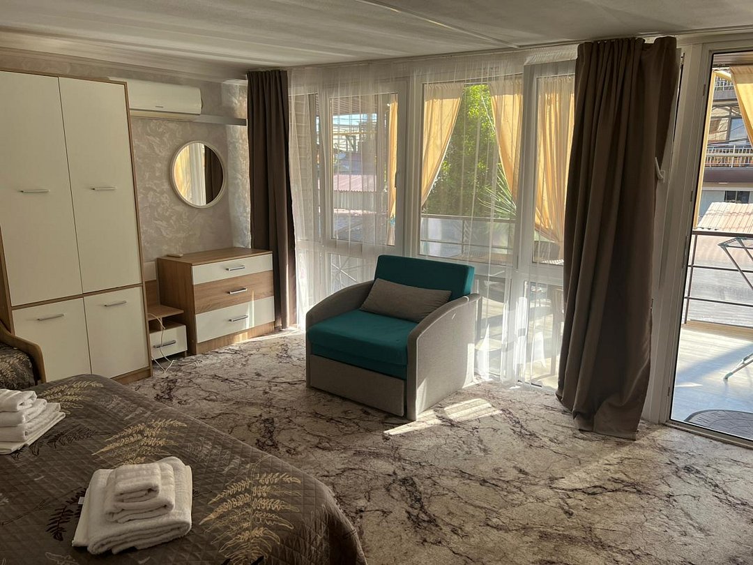 Уютный трехместный номер с дополнительным местом. Кухня и все удобства в номере. Есть свой балкон с лежаком.В номере