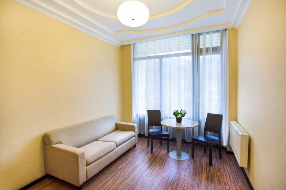 2 взрослых на основных местахВключен завтрак, обед и ужинПрограмма "Антистресс"ПодробнееВ стоимость входит: - проживание в номере выбранной категории - 3-х разовое диетическое питание - завтрак, обед, ужин ("шведский стол"), по медицинским показаниям - дробное диетическое питание - санаторно-курортное лечение согласно выбранной программе и показаниям к санаторно-курортному лечению (4 лечебные процедуры в день). - пользование бассейном - пользование тренажерным залом - пользование маршрутами для терренкура - культурно-развлекательная программа - подключение к wi-fi в корпусах санатория - вызов такси, вызов скорой помощи, других специальных служб, экстренная медицинская помощь - сейфовые ячейки - пользование пляжем санатория Дополнительно оплачивается: - курортный сбор - дополнительные платные услуги, по ценам, указанным в действующем на момент заезда прейскуранте. Расчетное время: Заезд: с 14:00 часов первого дня путевки. Выезд до 12:00 часов последнего дня путевки. Первая услуга по питанию: обед. Последняя услуга по питанию: завтрак. Наличие действующей санаторно-курортной карты является обязательным условием для размещения гостей в санатории!