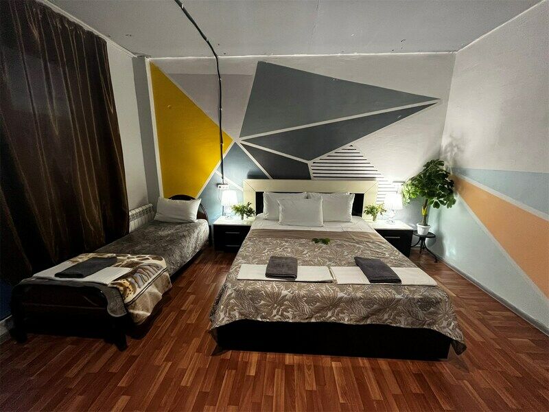 2 односп. кровати, двусп. кровать, с/у и душ на этаже, кондиционер, ТВ, мини-холодильник, фен.