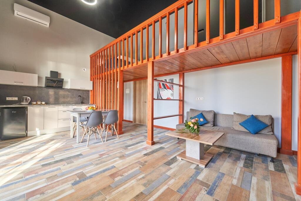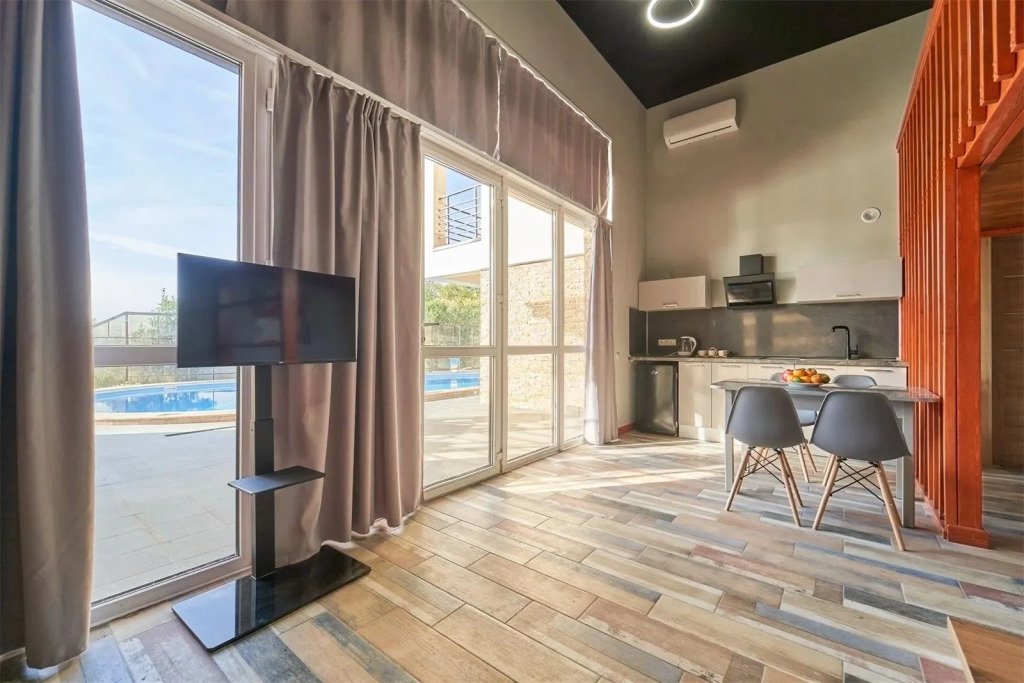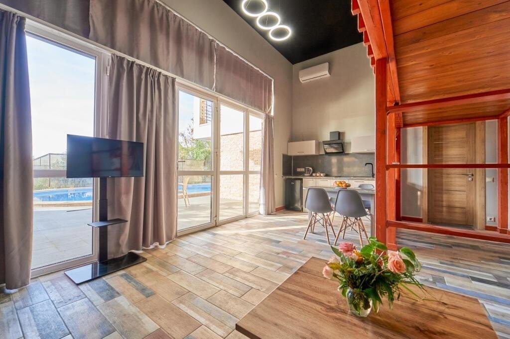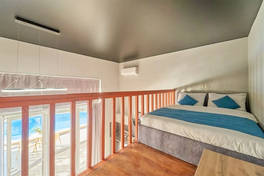 Двухуровневый номер с кухней и видом на бассейн.