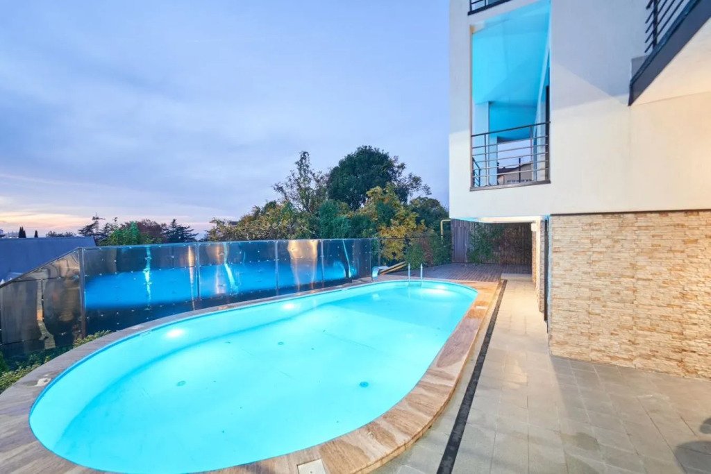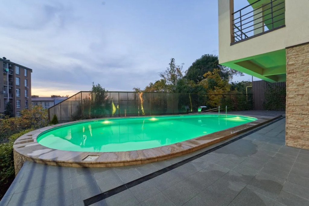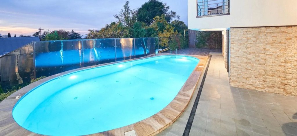 Круглогодично работает бассейн с подогревом , который меняет свою цветовую гамму под ритм музыки или настроения.