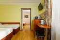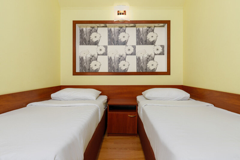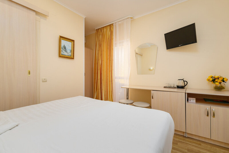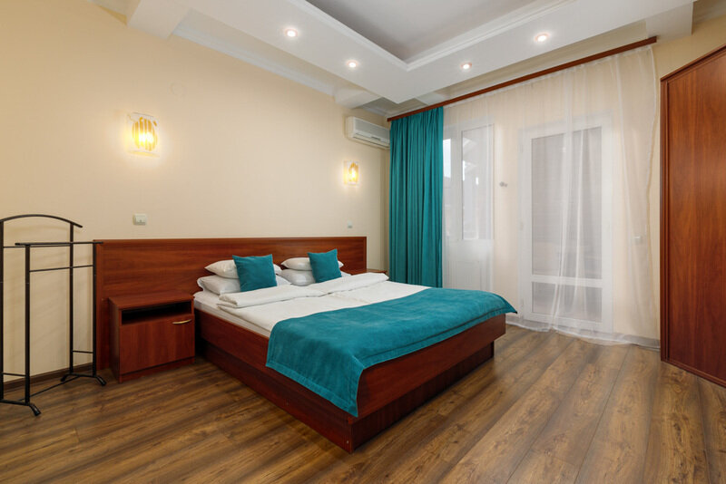 Гости могут выбрать уютные апартаменты с двумя изолированными спальнями и кухней, а также двухкомнатные или двух-трехместные номера. В каждом номере есть телевизор, холодильник, сплит-система и сейф. На территории отеля имеется подогреваемый бассейн.