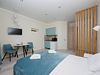 Двухместный апартамент - студия с балконом. В номере комфортная двуспальная кровать, собственная ванная комната с душем. Для вашего удобства, в апартаменте также имеется телевизор, мини-кухня с микроволновкой, холодильником, чайником и всем необходимым для приготовления еды. Мы также предоставляем фен, утюг и гладильную доску, тапочки и косметические принадлежности. Для гостей нашего отеля посещение подогреваемого открытого бассейна входит в стоимость проживания!Услуги и удобства