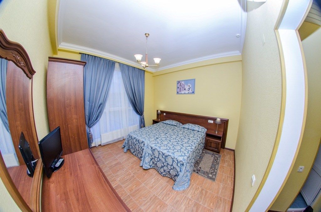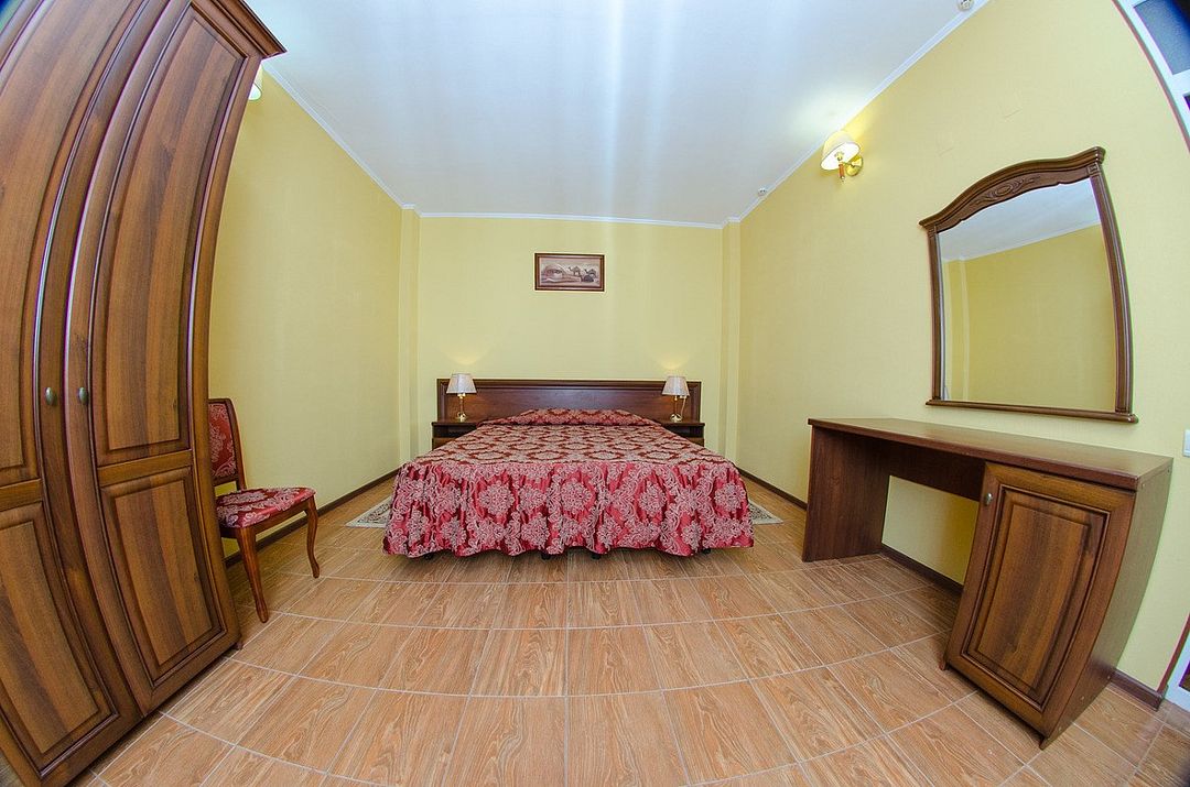Просторный двухкомнатный номер с большой двуспальной кроватью и балконом. Возможна установка дополнительного спального места (раскладной кровати).