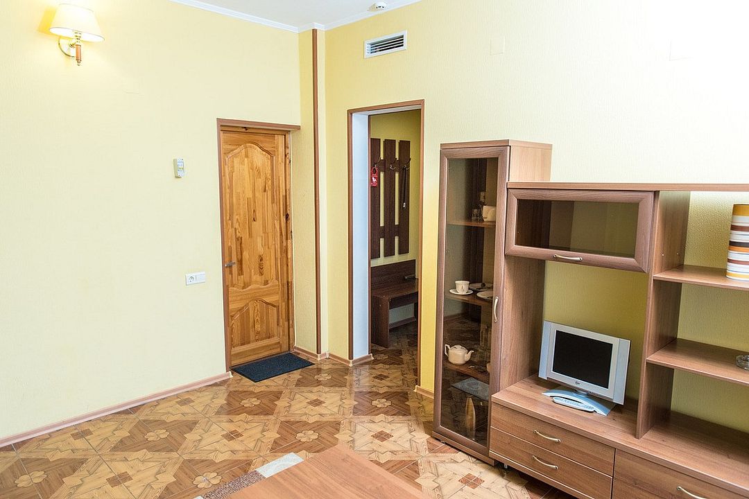 Комфортный однокомнатный номер с двуспальной кроватью и креслом-кроватью. Возможна установка дополнительного спального места (раскладная кровать).