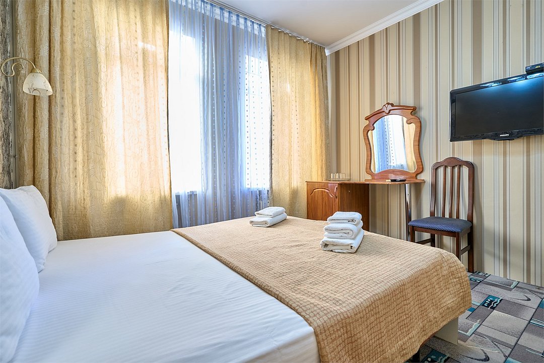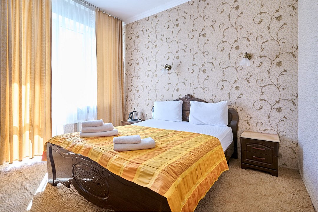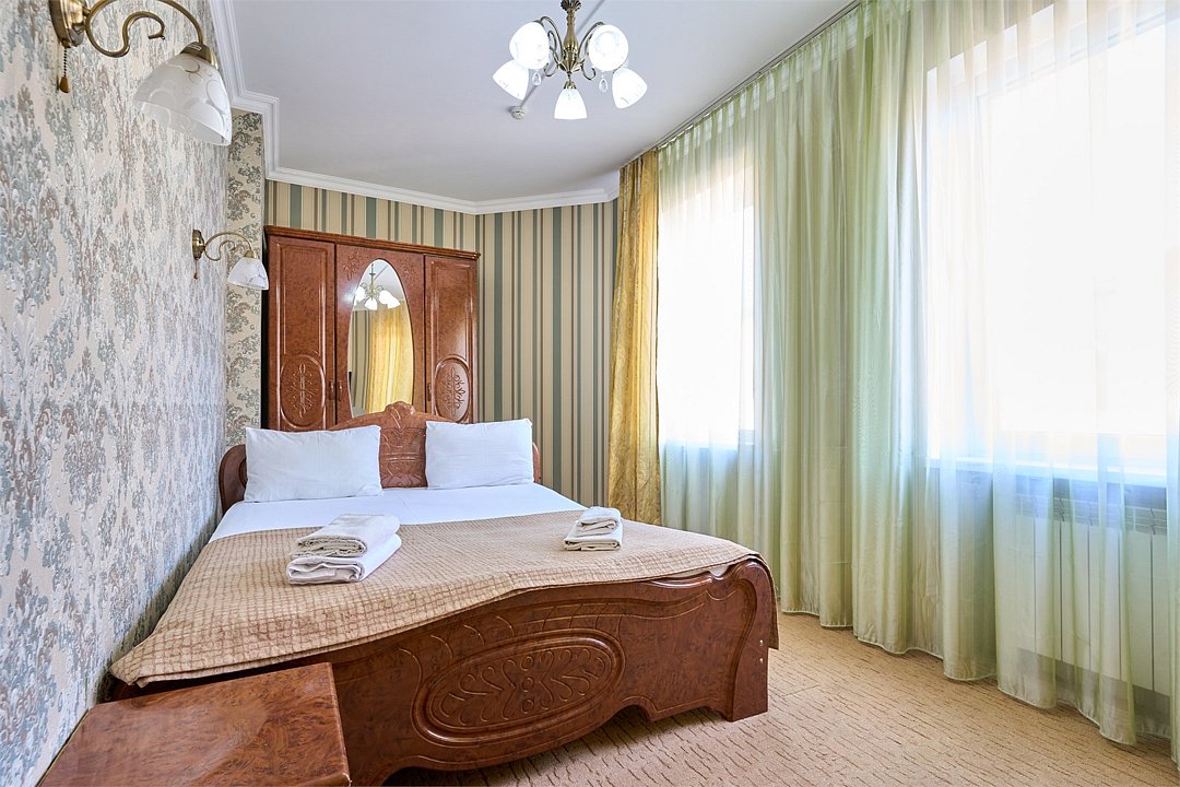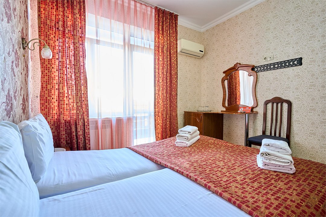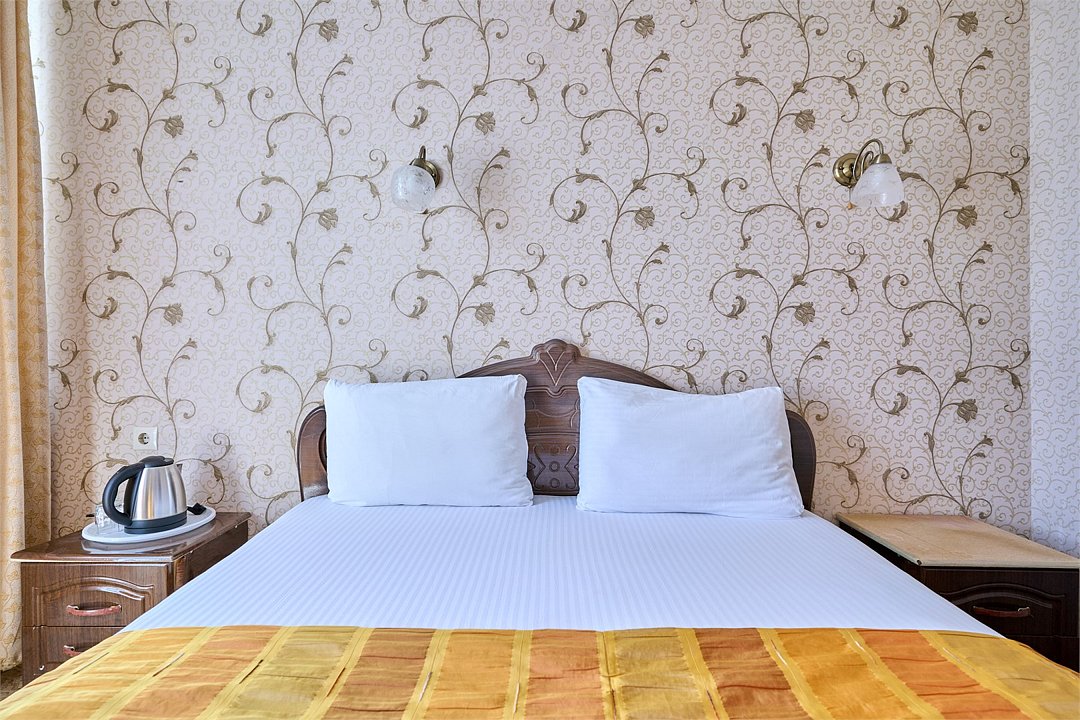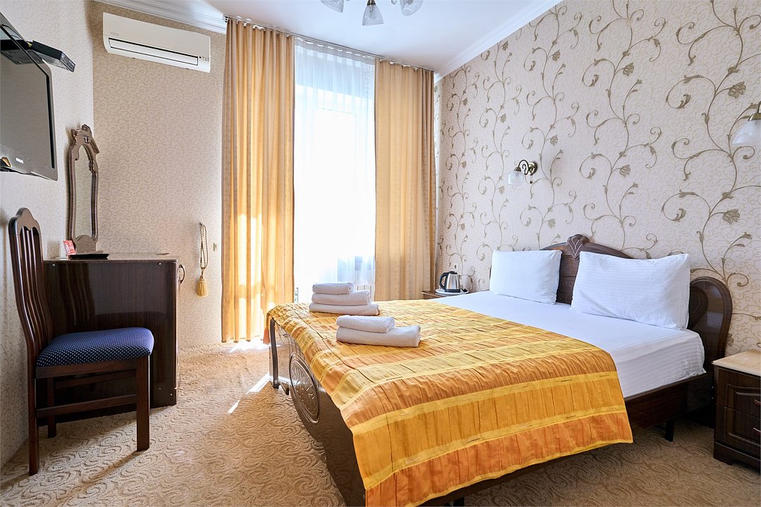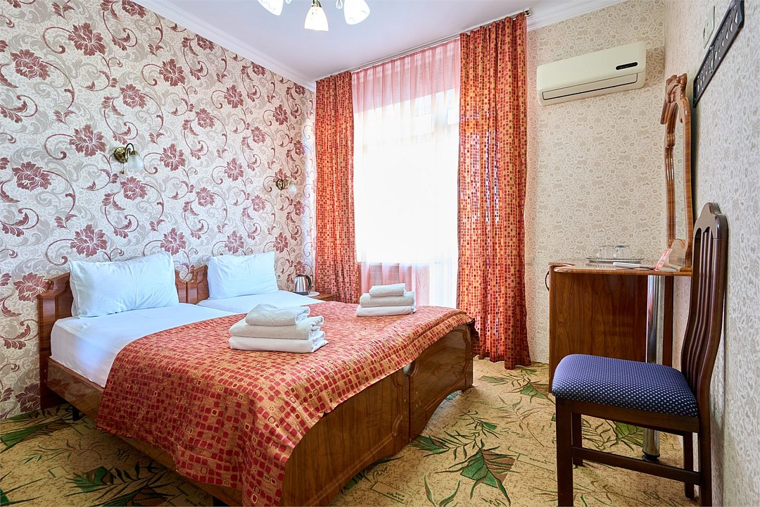 Стандартный номер, оборудован всем необходимым для комфортного пребывания гостей. Номер оснащен удобной двуспальной кроватью или двумя раздельными кроватями, прикроватными тумбочками, столиком, сплит системой. В каждом номере чайник ,фен.Услуги и удобства
