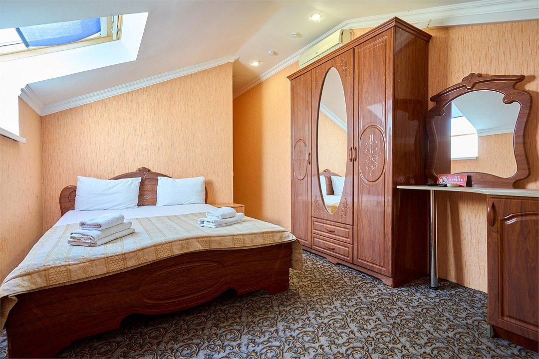 2-МЕСТНЫЙ СТАНДАРТ, МАНСАРДА - 12 кв. м, двуспальная кровать, с/без балкона ,вид на горы/ двор/море, расположение номеров -6 этаж, ЗДАНИЕ БЕЗ ЛИФТА, в номере чайник, фен, кружки, на каждом этаже гладильная доска, утюг, микроволновая печьУслуги и удобства