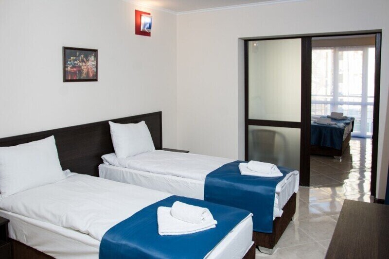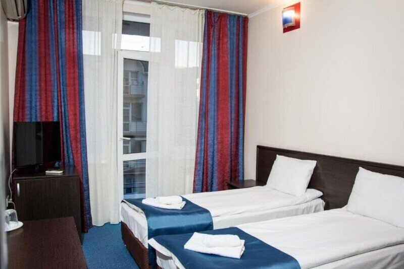Оснащение номера: две раздельные кровати, балкон, ванная комната, ЖК - телевизор, кондиционер, холодильник, фен, туалетные принадлежности, бесплатный Wi-Fi, два комплекта постельного белья и полотенец, письменный стол, два пуфика, две прикроватные тумбочки, шкаф для одежды.